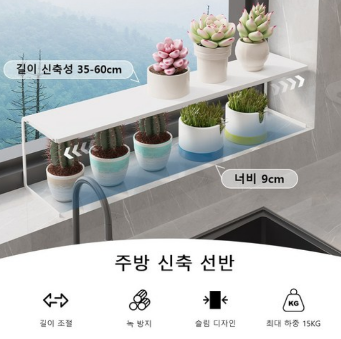 효율적인 공간 활용을 위해 슬림형 주방 선반 정리함은 정말 필요한 제품입니다. 좁은 공간에서도 활용 가능하며 길이 조절 기능으로 다양한 공간에 딱 맞게 설치할 수 있습니다.