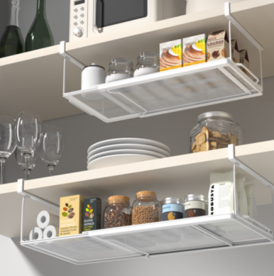 “선반 아래 공간을 활용하니 수납공간이 많아져서 정말 유용해요.”